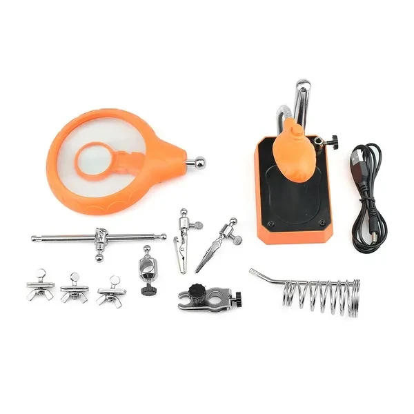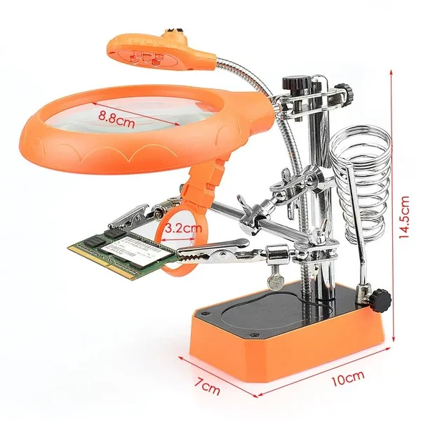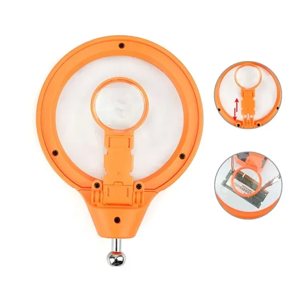 عدسة تكبير LED ضوء 5 مع حامل لحام مساعد في اللون البرتقالي هي أداة أساسية للهواة والمحترفين على حد سواء. مع 5 أضواء LED فائقة السطوع، توفر العدسة رؤية واضحة، بينما تتيح لك العدسات القابلة للتعديل التركيز على أدق التفاصيل. يضمن الحامل المساعد الثابت أيدٍ ثابتة للمهام المعقدة مثل اللحام، وإصلاح الإلكترونيات، أو صناعة المجوهرات.