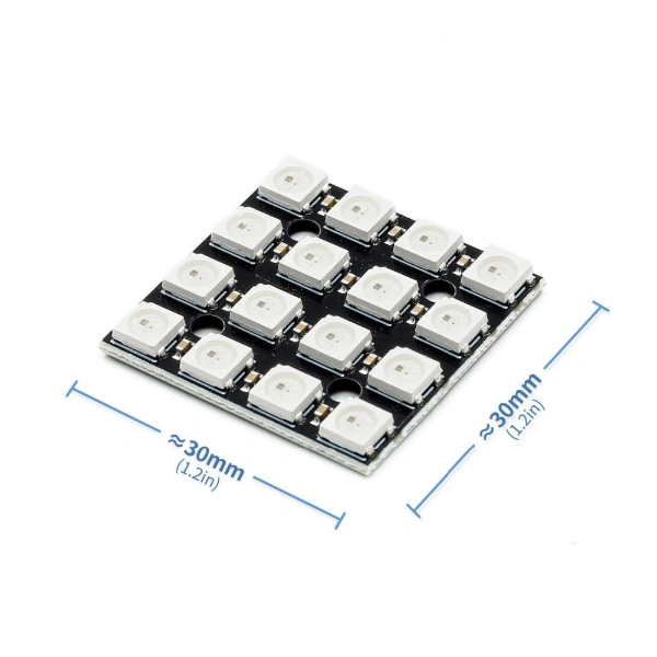 تتميز هذه اللوحة المربعة من نوع WS2812B (المتوافقة مع نيو بيكسل) بـ 16 ليد RGB 5050 فائق السطوع مرتبة في شبكة 4×4.